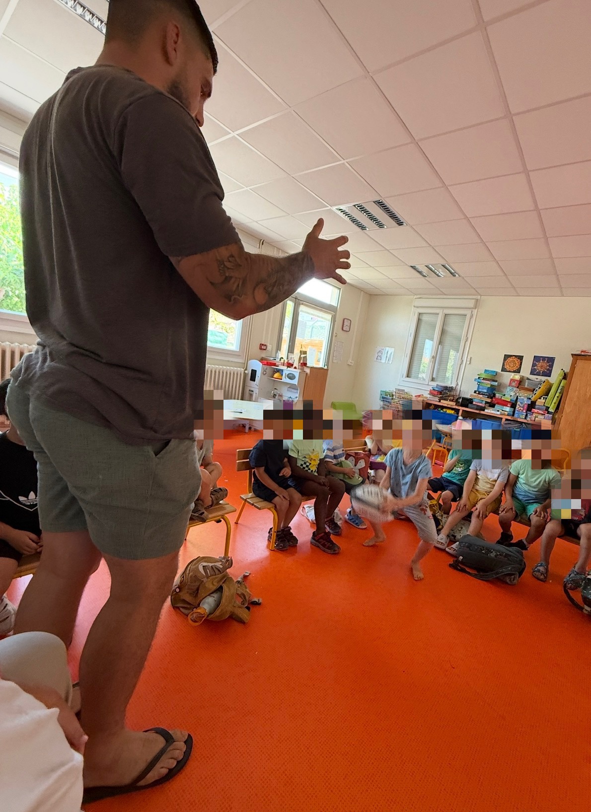 Mathieu Giudicelli s’est rendu dans les classes de maternelle pour un moment d’échange adapté à leur âge, chaleureux et ludique. Les enfants ont pu découvrir l’équipement d’un joueur de rugby : crampons, casque, protège-dents, ballon… Autant d’objets qui ont éveillé leur curiosité et donné lieu à de nombreuses questions.